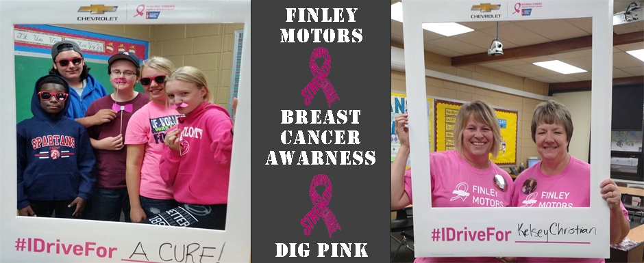 October is Breast Cancer Awareness month and Chevy dealers like ours, support this great cause. Hope-Page students have decorated for display and we appreciate that they did this for us to have in our showroom. Remember to post on Facebook or Instagram using the hashtag #wedrivefor in the month of October, Chevrolet will contribute $5 to the American Cancer Society.