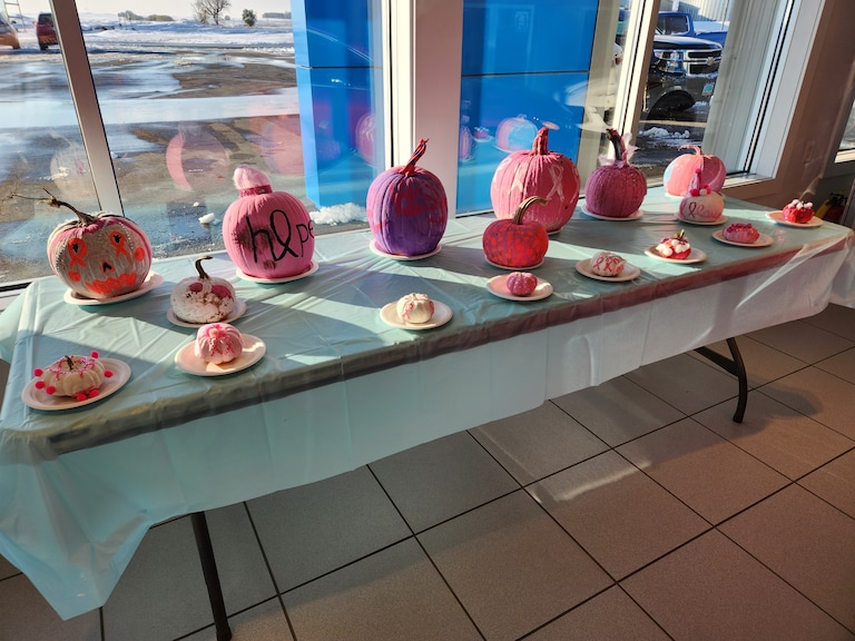 During the month of October...they were asked to create your best "breast cancer awareness" pumpkin and bring it to your local Finley Motors location by October 15 to have on display! Community members stopped by the locations during October 18-27th and vote for your favorite pumpkin! Monetary donations were appreciated and will be given to the American Cancer Society.