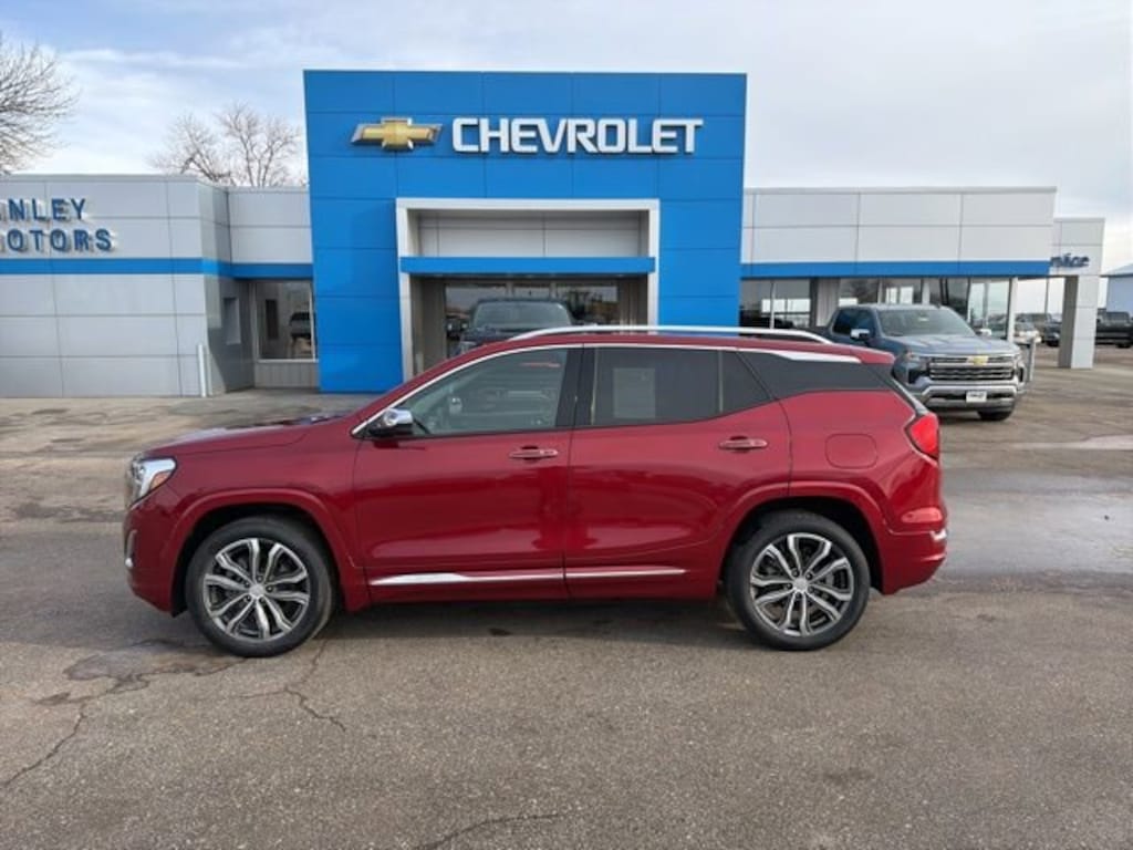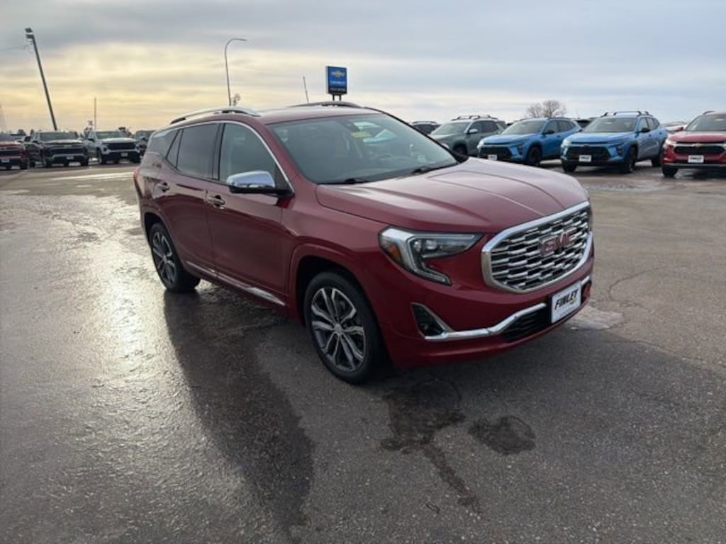 Maroon 2019 GMC Terrain Denali Clean CARFAX. Odometer is 10531 miles below market average! Full tank of gas with vehicle purchase! All vehicles fully serviced inspected and ready to go. We are a small town dealer and we stand behind our vehicles and our customers!
